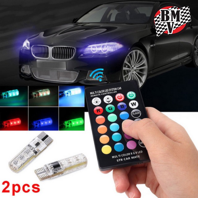 Sepasang lampu senja led rgb t10 5050 smd 16 warna plus remote.
