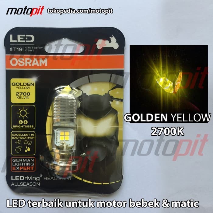 Butuh lampu motor led lampu motor variasi lampu halogen atau lampu motor hid. Jual osram lampu utama motor led t19 h6 m5 k1 kuning 7735ye 1 pcs dengan harga rp80 400 dari toko online osram automotive kab. Lampu bohlam led t19 motor osram 12 v h6 m5 k1 putih 7735cw 1 pcsrp49 500. Kami membutuhkan saran anda.