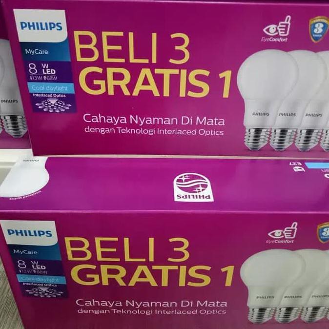 Jual philips lampu led paket mycare 10w 10 watt putih beli 3 gratis 1 dengan harga rp110 495 dari toko online jaya elektrik kota surabaya.