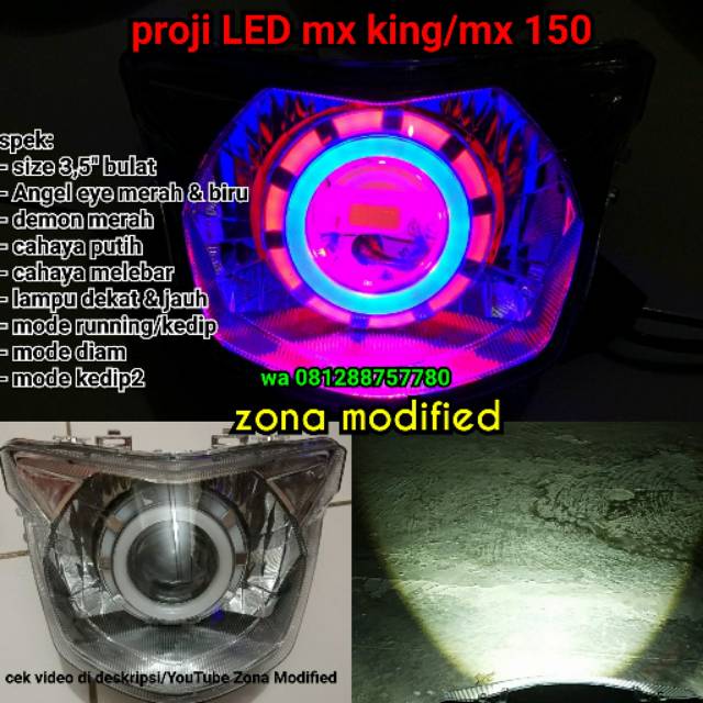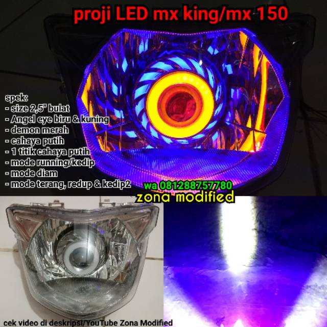 Lampu proji mx king. Running kedip2 dan diam order via tokopedia klik link di bawah ini https tokopedia link 24ova. Tutorial pasang lampu projie u7 inner custom mx king nih sedulur sekalian ane share tutorial pasang lampu inner custom buat mx king kalo untuk sambungan kabelnya ane rasa semua motor hampir sama. Pasang lampu proji led mx king led light y15zr 26 03 automotive. Lampu proji led 2 5 model bulat nanas mini plus reflektor sudah di rakit pnp tinggal pasang saja spek.
